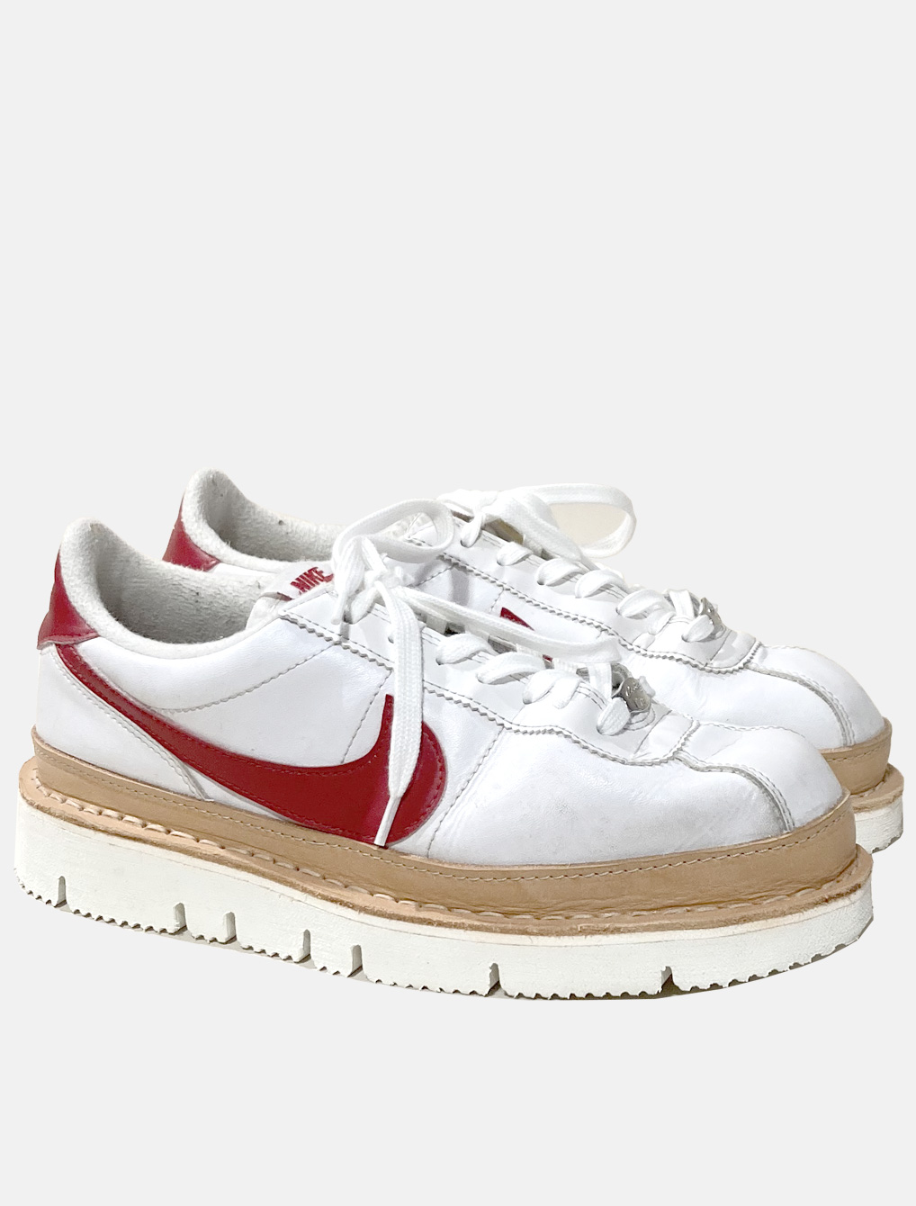 Ricostruzione Nike Cortez con soletto interno in cuoio leggero, intersuola cucita a mano e suola Vibram Gloxy cut.
